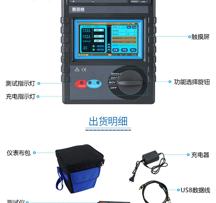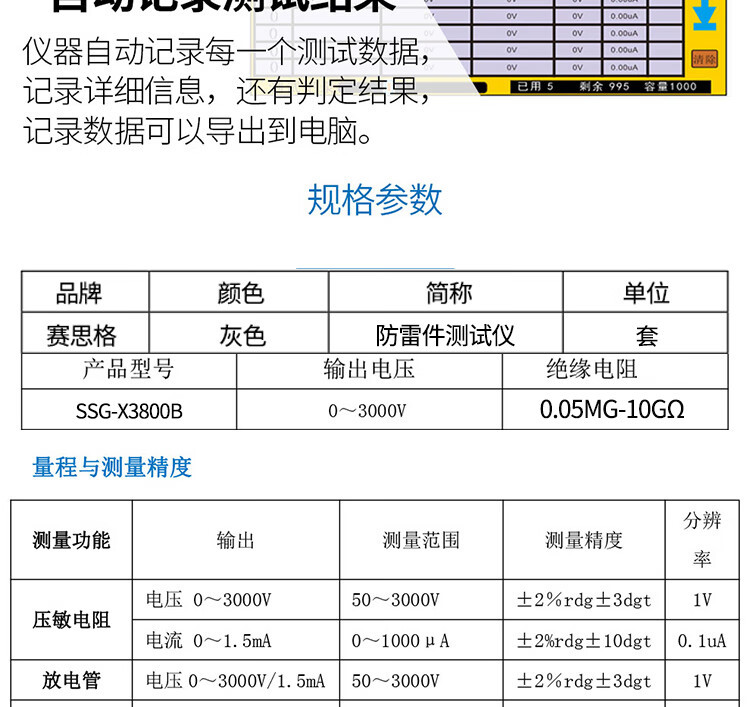 赛思格 SSG-X3800B 绝缘电阻0.05MG-10GΩ 灰色 防雷件测试仪 电阻测试仪 单位:套