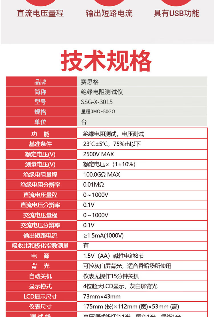 赛思格 SSG-X-3015 量程0~50GΩ 绝缘电阻测试仪 单位:台