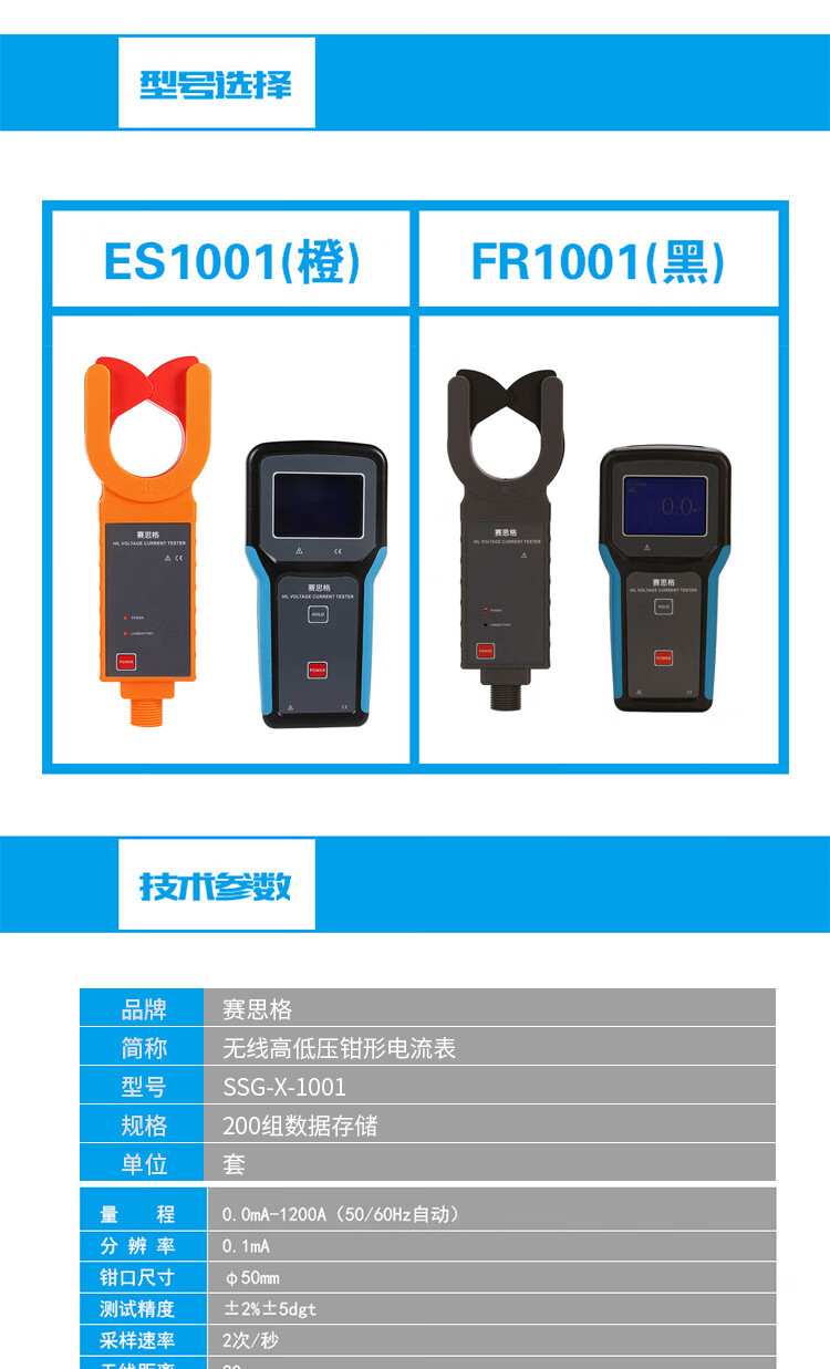 赛思格 SSG-X-1001 200组数据存储 黑色 橙色可选 无线高低压钳形电流表 单位:套