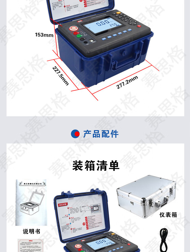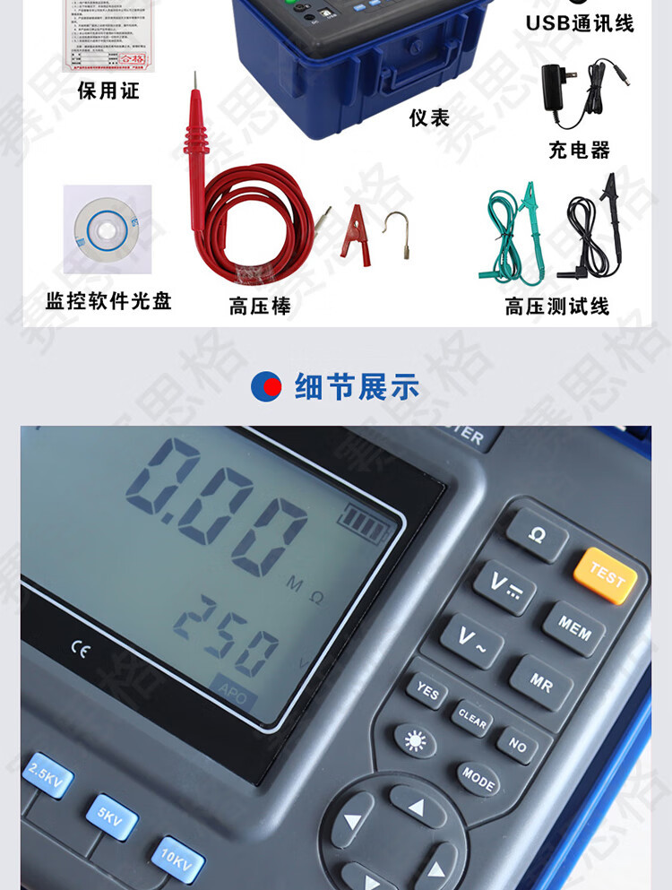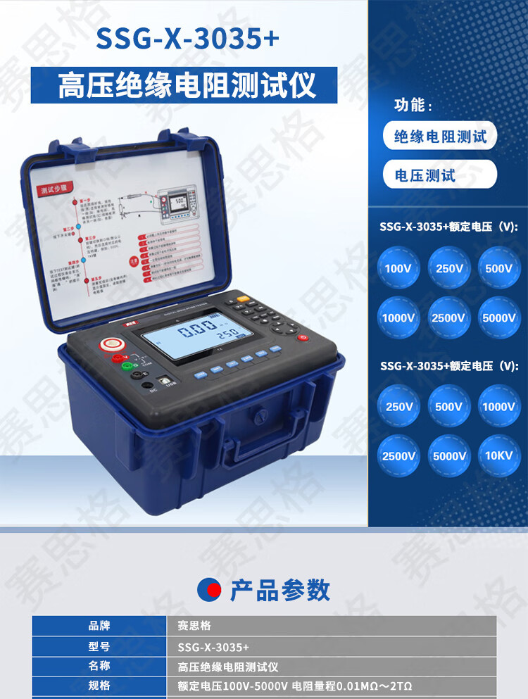 赛思格 SSG-X-3035+ 额定电压100V-5000V 电阻量程0.01MΩ~2TΩ 高压绝缘电阻测试仪 单位:台