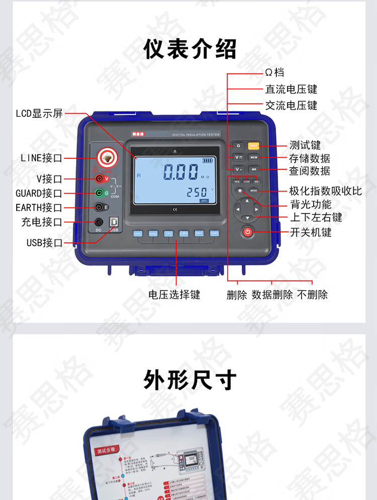 赛思格 SSG-X-3001 多功能型 接地电阻量程0.00Ω~30.00KΩ 四线接地电阻测试仪 单位:台