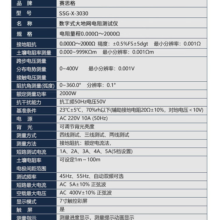 赛思格 SSG-X-3030 电阻量程0.030Ω~2000Ω 数字式大地网电阻测试仪 单位:台