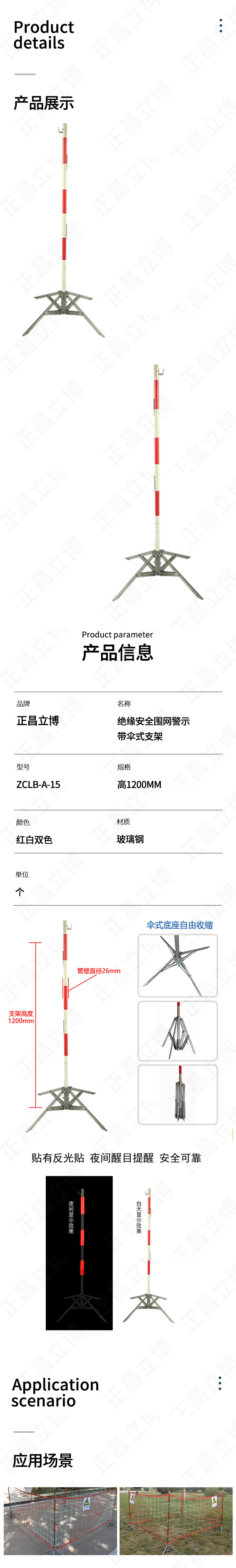 正昌立博 ZCLB-A-15 高1200MM 红白双色 绝缘安全围网警示带伞式支架 单位:个